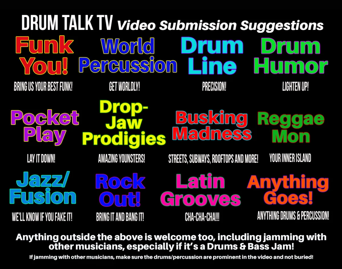 If you submit a video link that we do use, we will download it and play it from our platforms. It will get many more views that way, rather than sharing it or crossposting. If we post your video, you should follow the comments on the post, made by our Drum Talk TV community–it’s a great way to obtain feedback. Just be prepared to see comments reflecting the fact that not everyone likes everything they see or hear. And let that roll off your back!